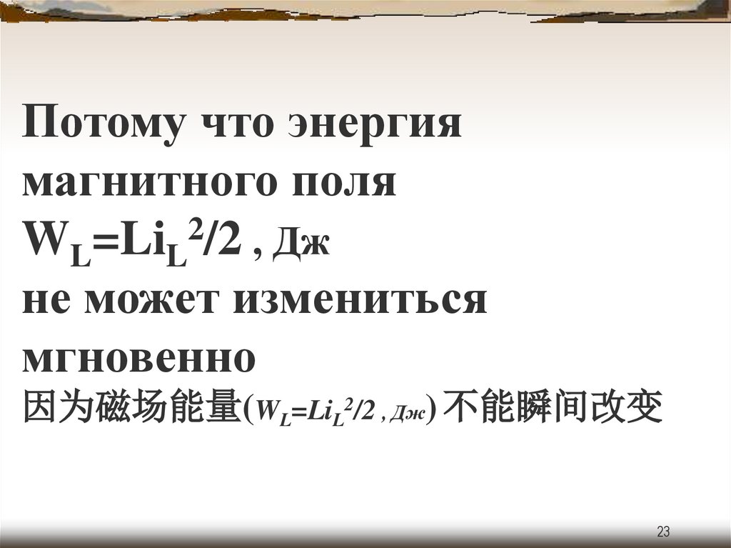 因为磁场能量(WL=LiL2/2 , Дж) 不能瞬间改变