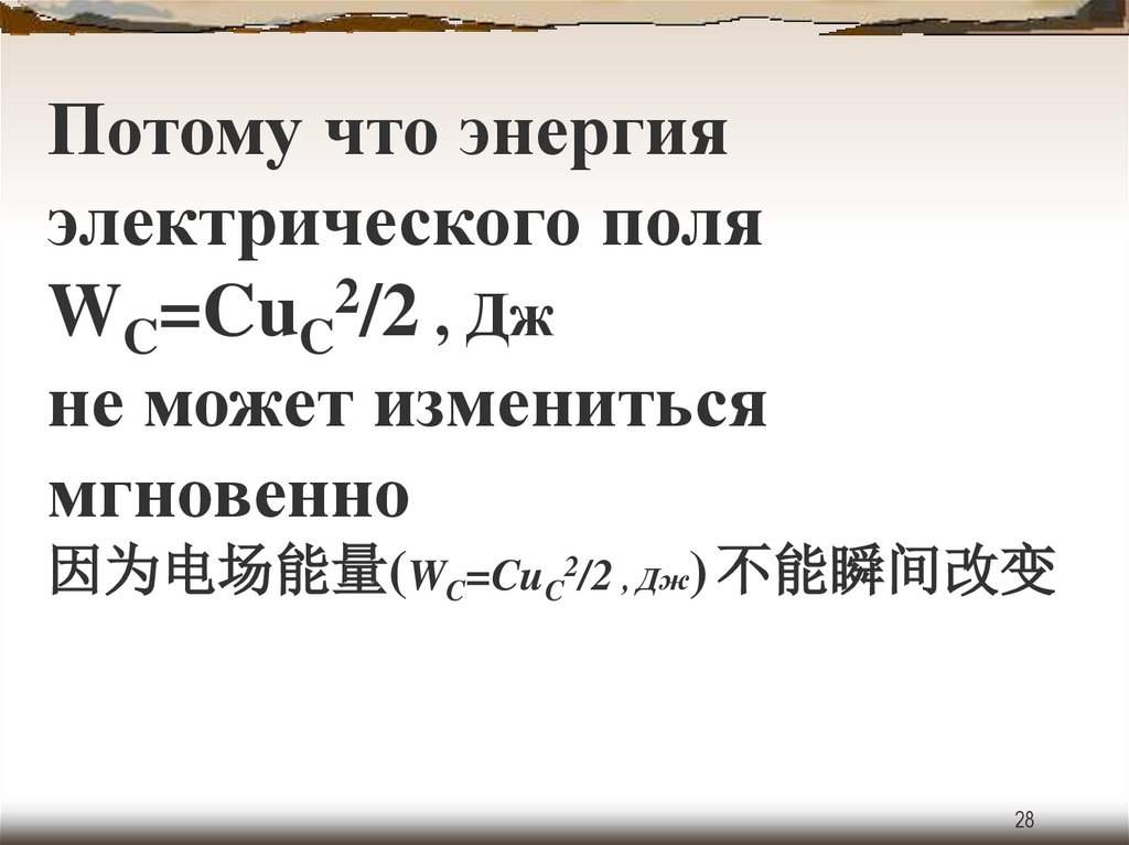因为电场能量(WC=CuC2/2 , Дж) 不能瞬间改变