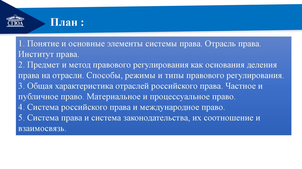 5. Система права и система законодательства, их соотношение и