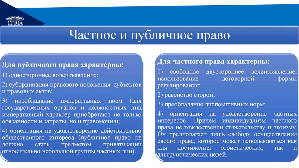 Для публичного права характерны: