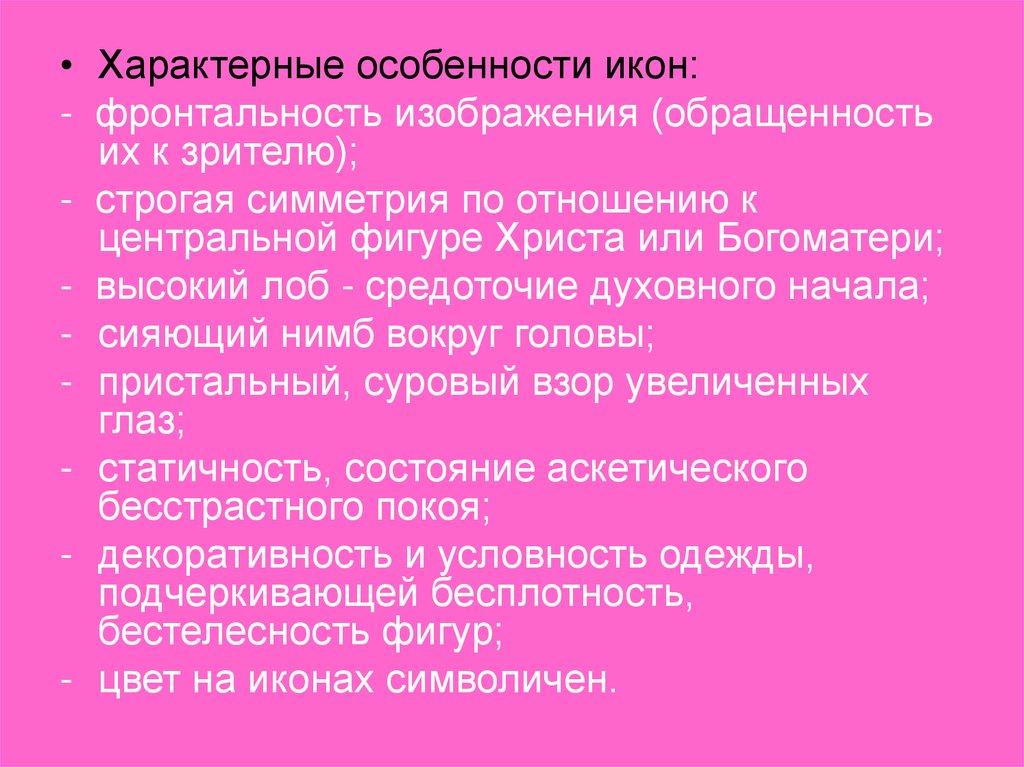 • Характерные особенности икон:- фронтальность изображения (обращенность