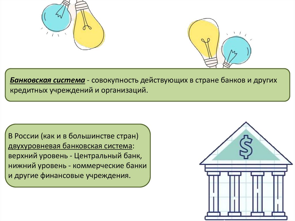 Банковская система - совокупность действующих в стране банков и другихкредитных учреждений и организаций.