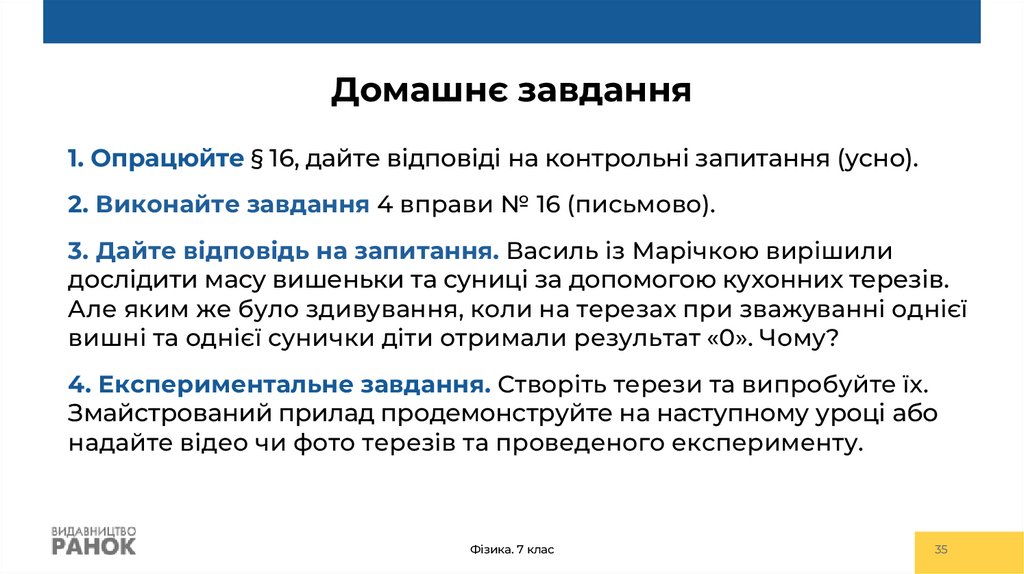 Домашнє завдання1. Опрацюйте § 16, дайте відповіді на контрольні запитання (усно).