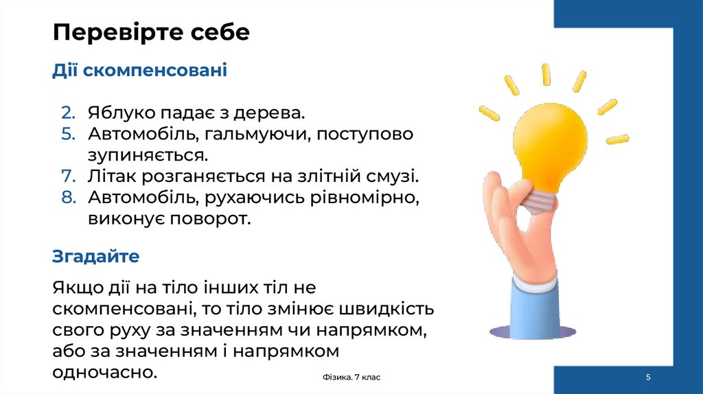 5. Автомобіль, гальмуючи, поступово зупиняється.