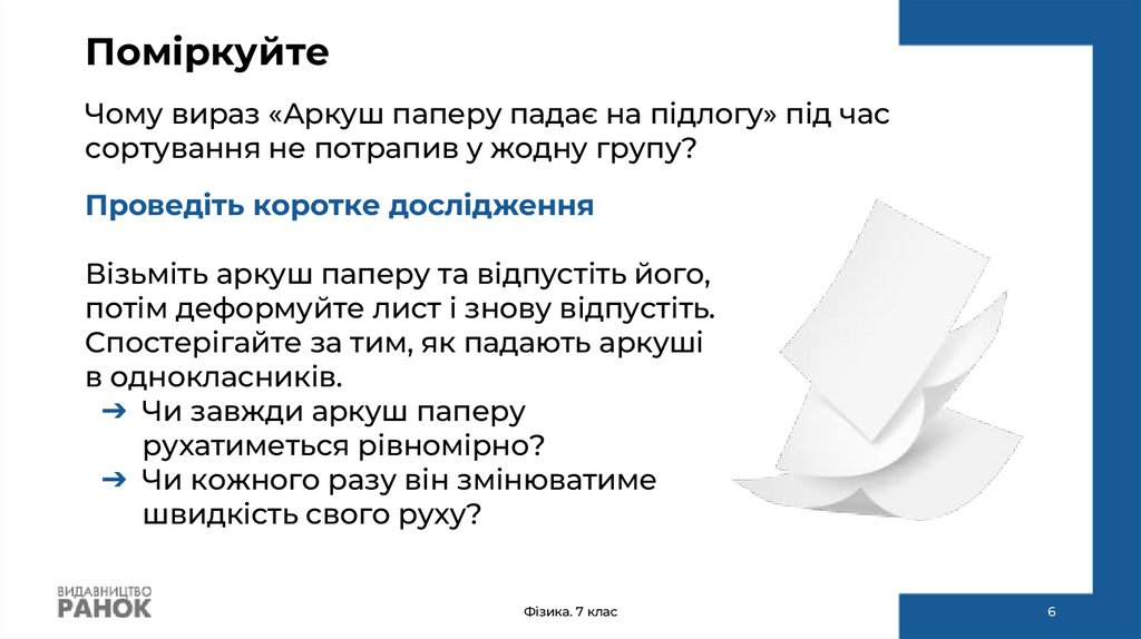 ПоміркуйтеЧому вираз «Аркуш паперу падає на підлогу» під час