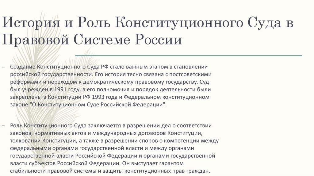 3. История и Роль Конституционного Суда в Правовой Системе России