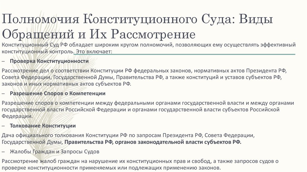 5. Полномочия Конституционного Суда: Виды Обращений и Их Рассмотрение