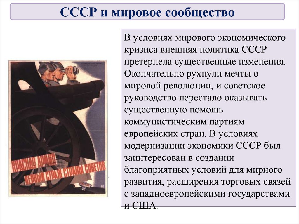 ВыводВ начале 1930-ых годов внешняя политика СССР