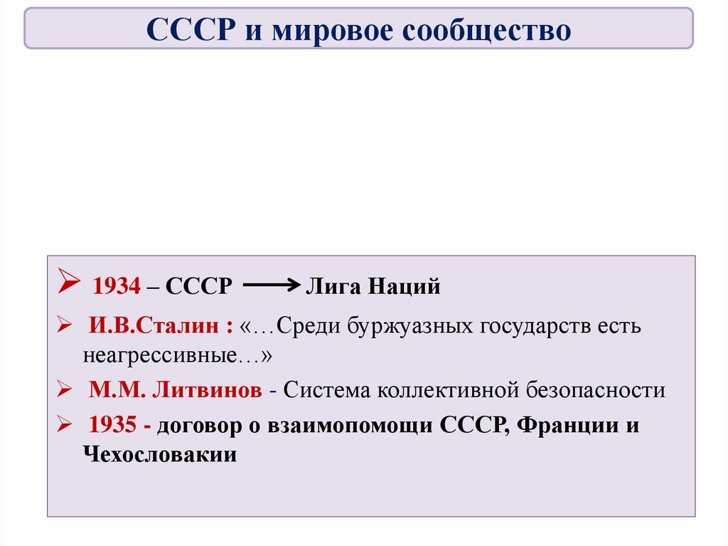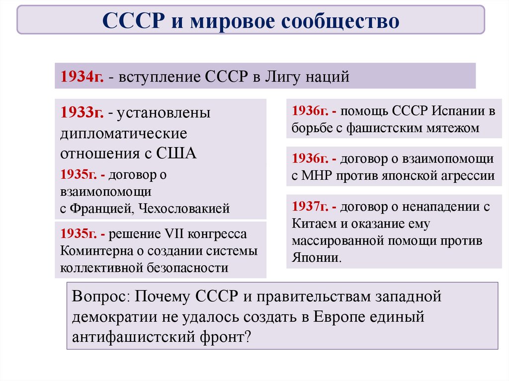СССР и мировое сообщество в 1929-1939гг