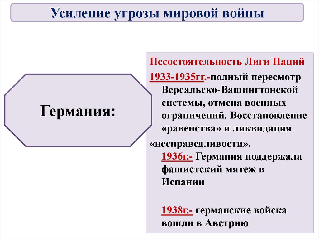 2. В Европе : выход Германии из Лиги Наций и увеличения ее военных