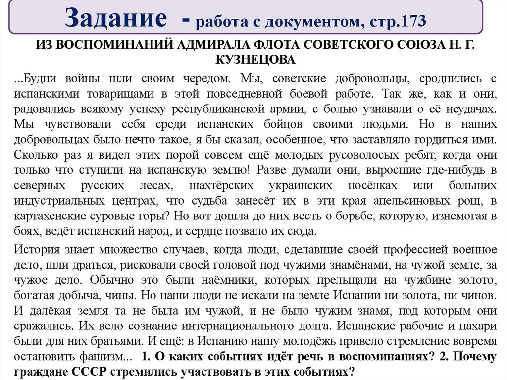 Актуализация знанийИз письма посла США в Испании К. Бауэрса послу США в
