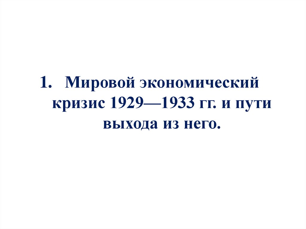 1. Мировой экономическийкризис 1929—1933 гг. и пути