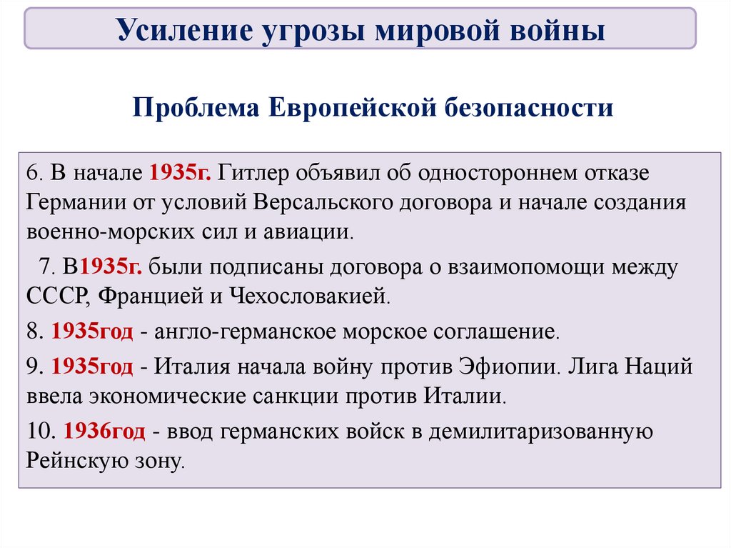 3. Усиление угрозы мировой войны.