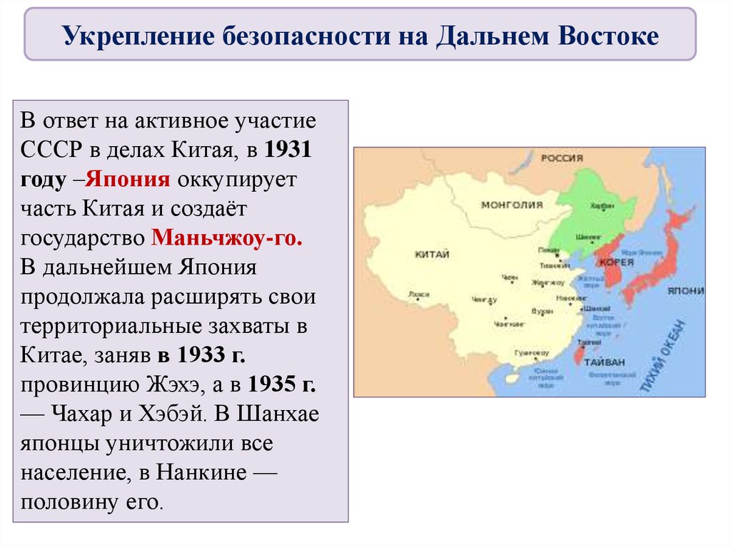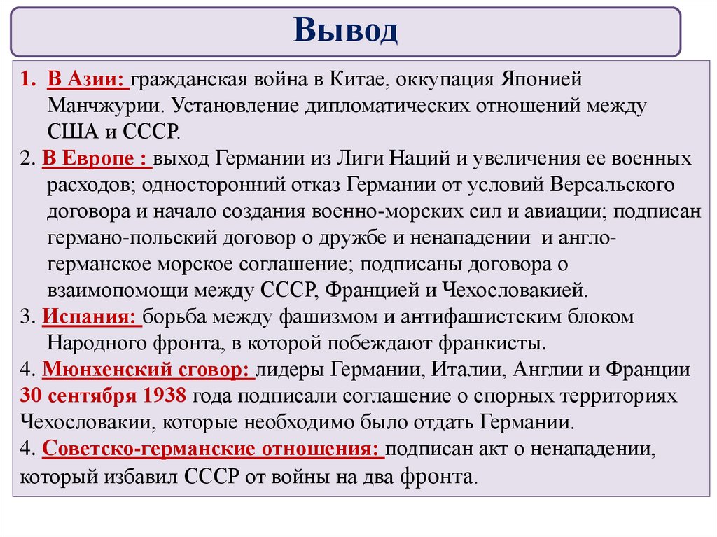 Вывод1. В Азии: гражданская война в Китае, оккупация Японией