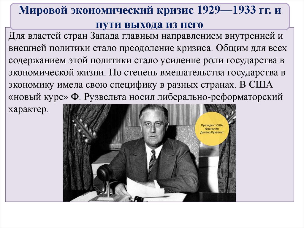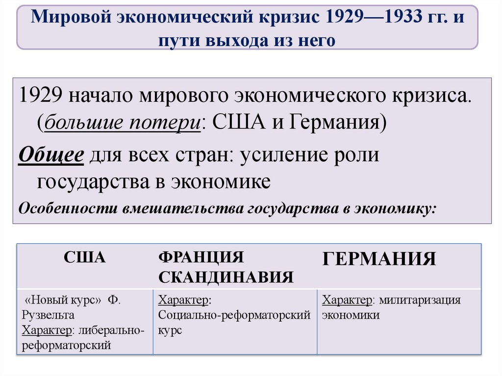 Мировой экономический кризис 1929—1933 гг. ипути выхода из него
