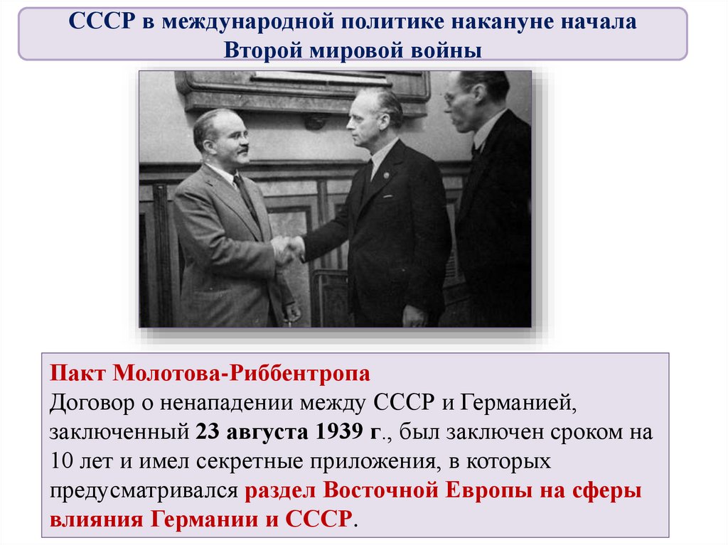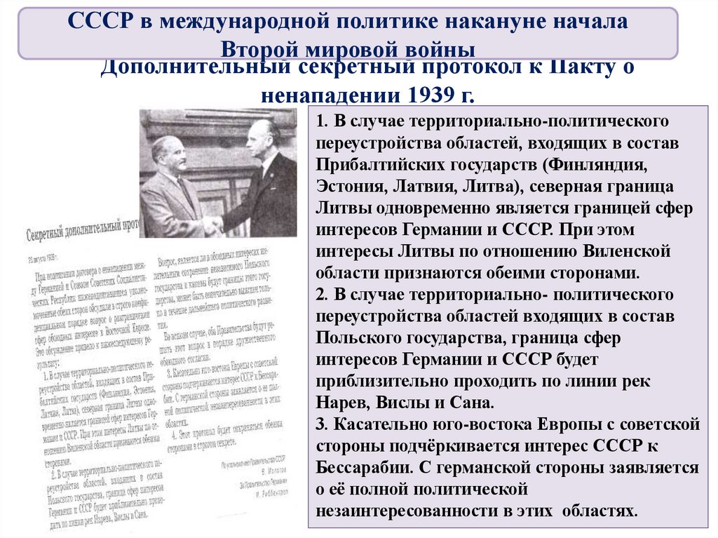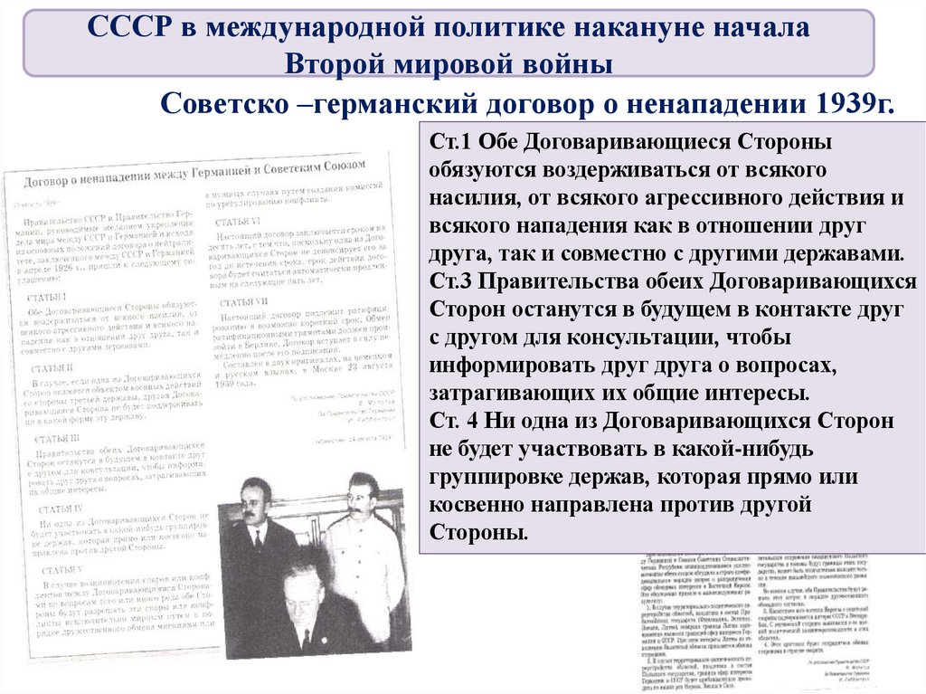 4. Советско-германские отношения: подписан акт о ненападении,