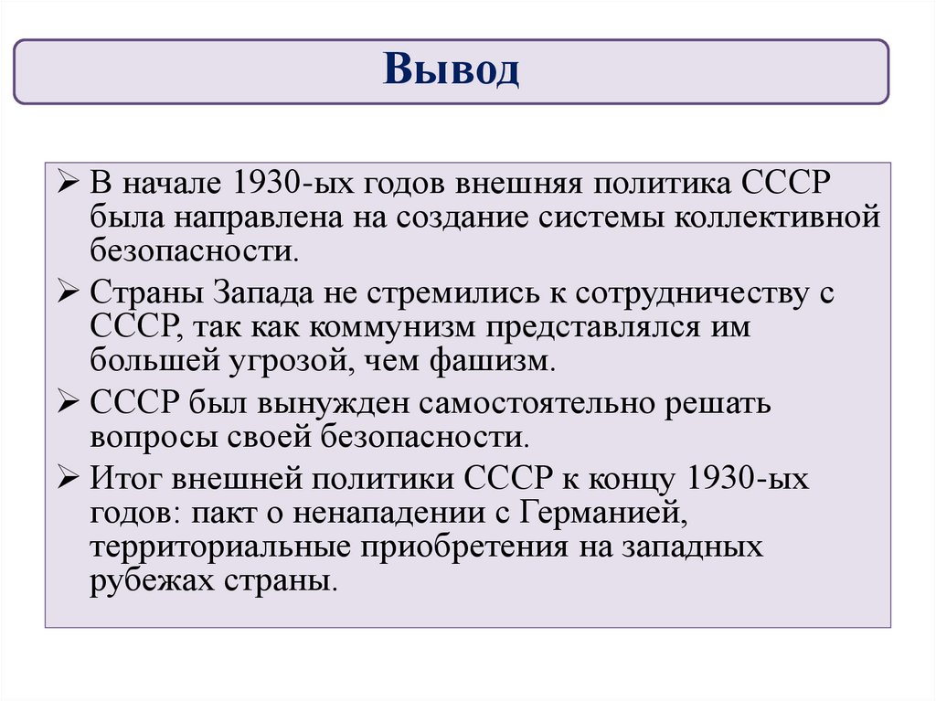 Итог внешней политики СССР к концу 1930-ых