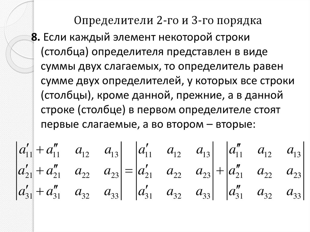 8. Если каждый элемент некоторой строки(столбца) определителя представлен в виде
