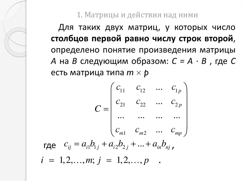 Для таких двух матриц, у которых числостолбцов первой равно числу строк второй,