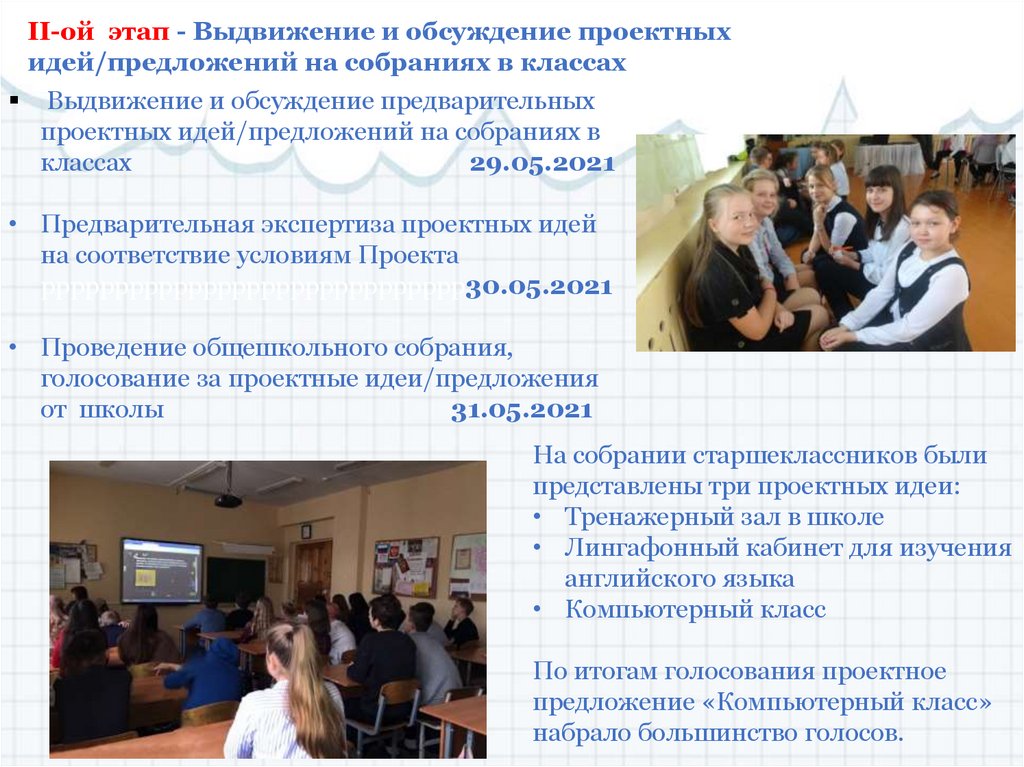 II-ой этап - Выдвижение и обсуждение проектныхидей/предложений на собраниях в классах