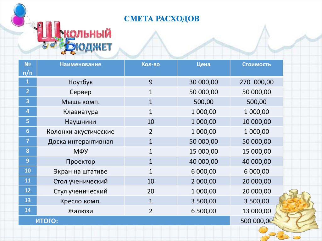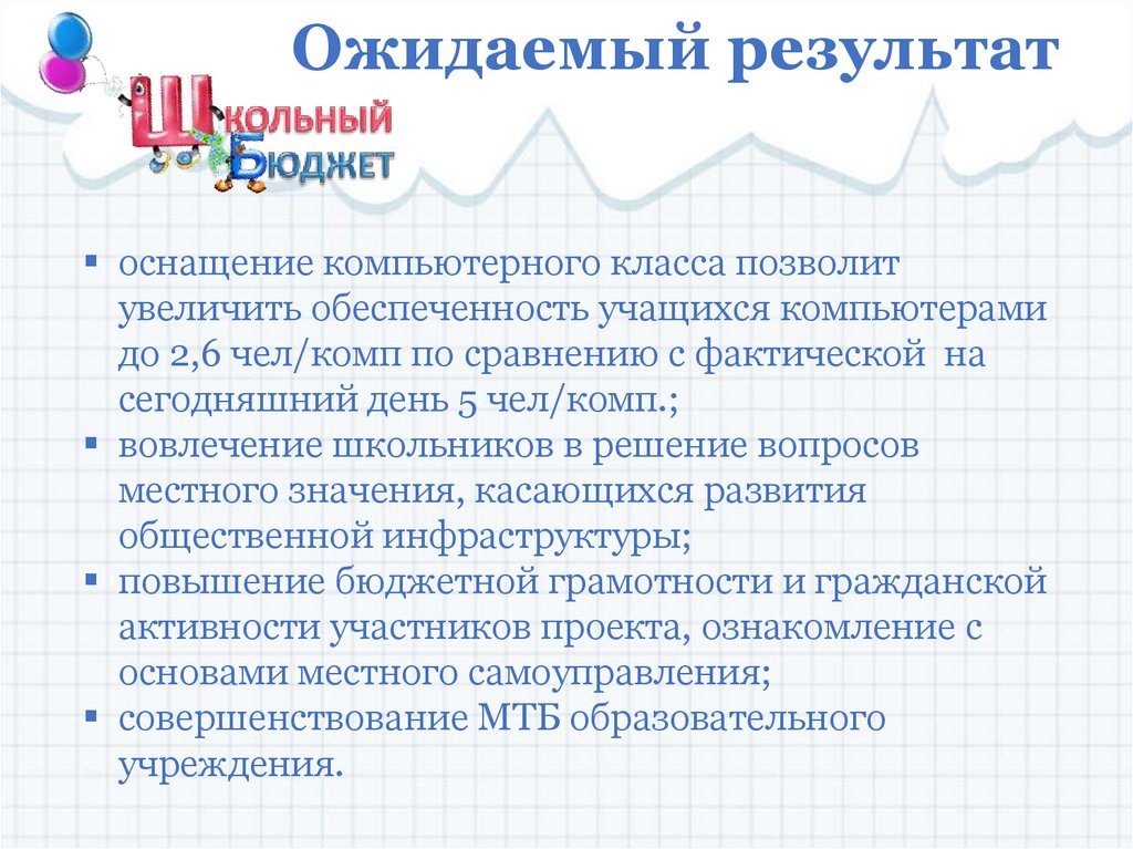 1. «Пилотный» проект «Школьный бюджет» Проект «Компьютерный класс»