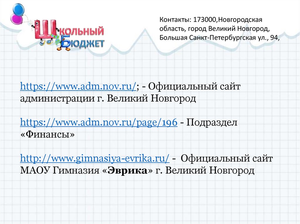 Контакты: 173000,Новгородскаяобласть, город Великий Новгород,