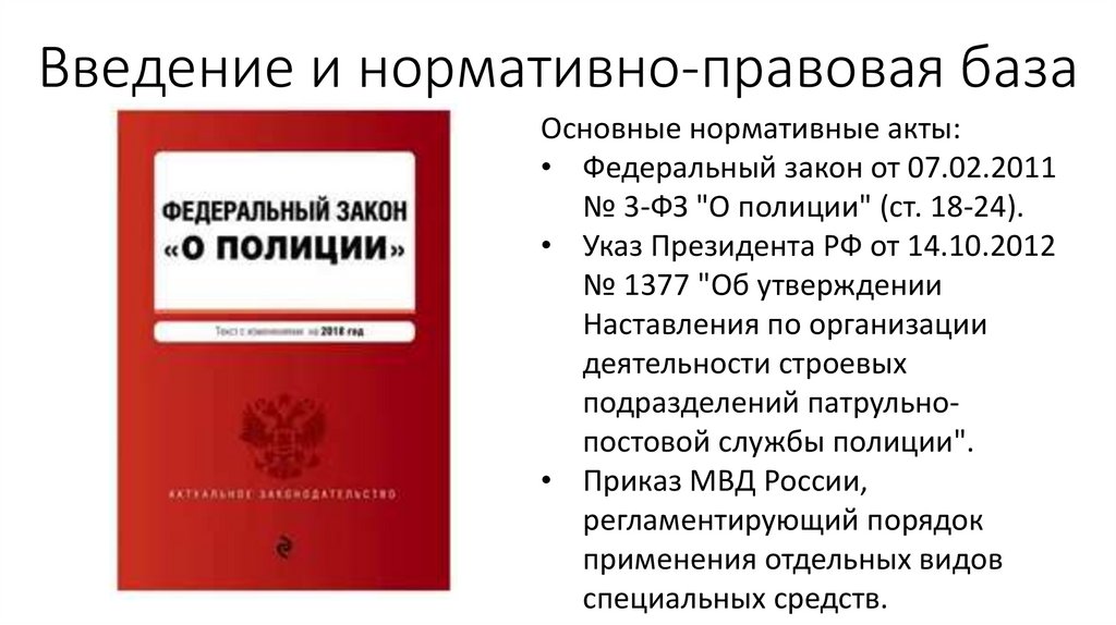 № 3-ФЗ "О полиции" (ст. 18-24).