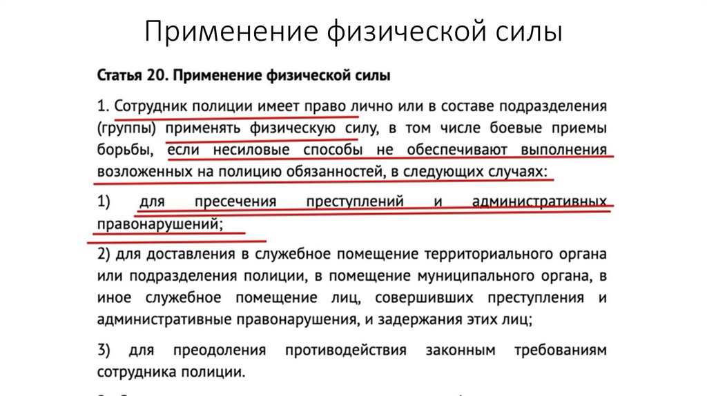 Вывод:Применение силы — исключительная мера, требующая строгого соблюдения