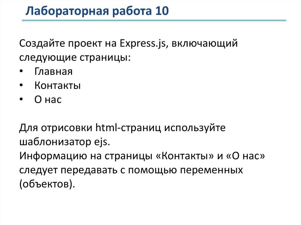 Лабораторная работа 10Создайте проект на Express.js, включающий