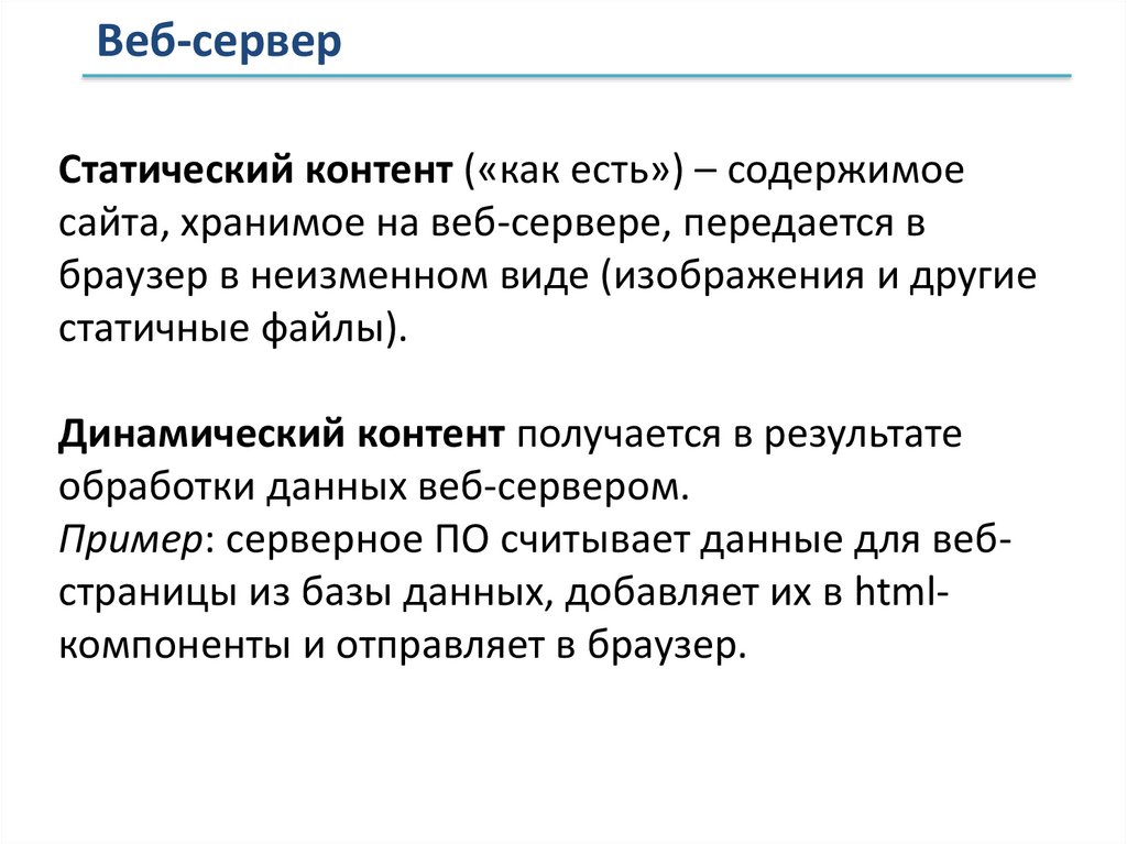 Веб-сервер – удаленный компьютер, хранящий ресурсы