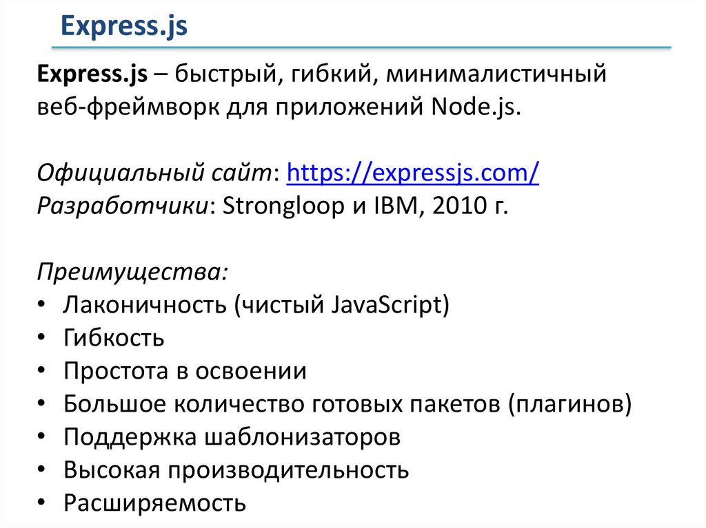 Express.jsExpress.js – быстрый, гибкий, минималистичный