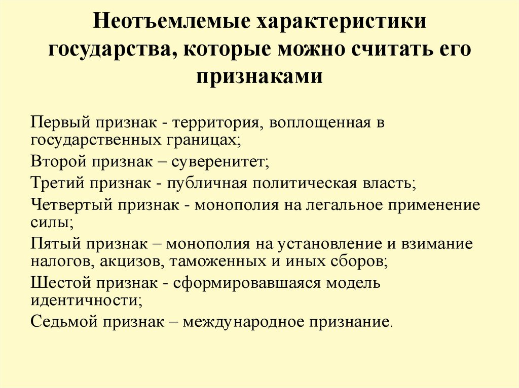 8. Неотъемлемые характеристики государства, которые можно считать его признаками