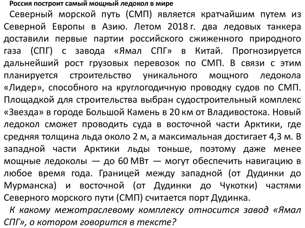 Россия построит самый мощный ледокол в миреСеверный морской путь (СМП) является кратчайшим путем из
