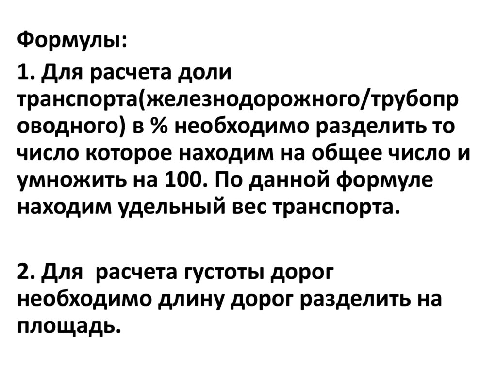 Формулы:1. Для расчета доли