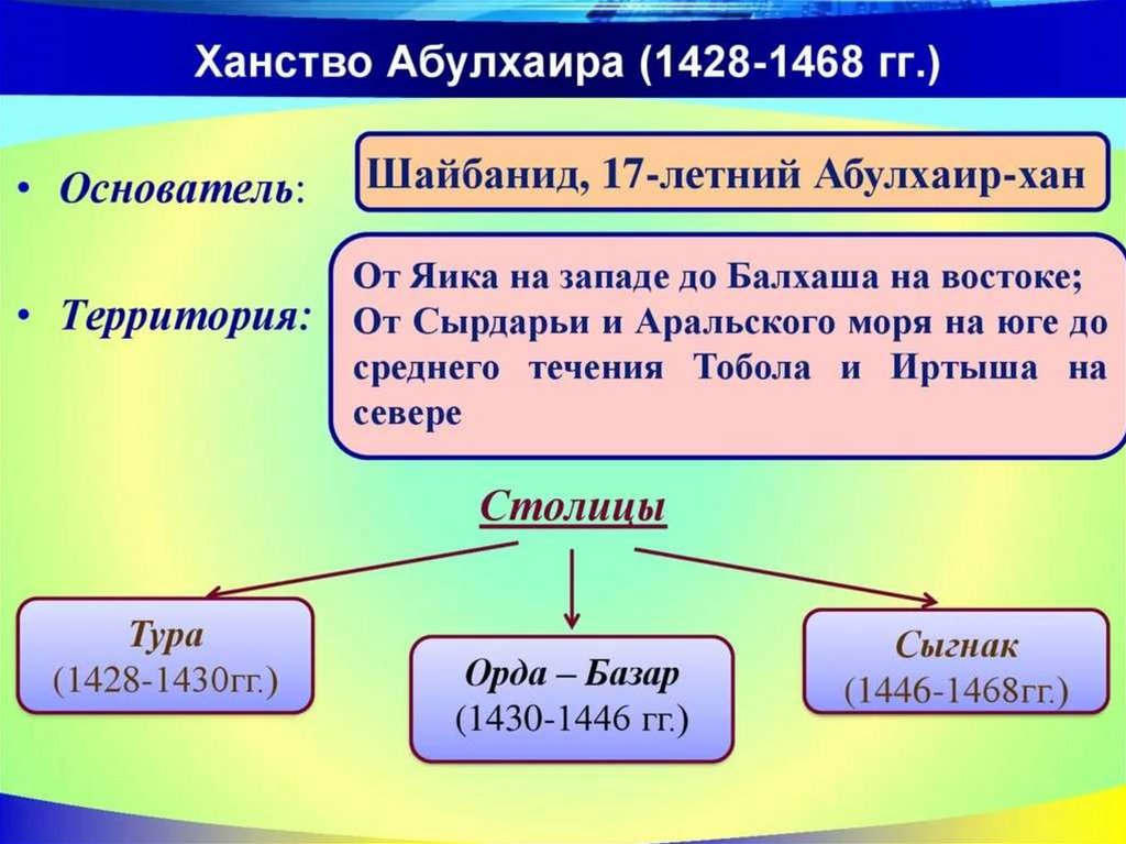 властью Ак Орды, ханства Абулхаира, Могулистана и других ханств. Такая