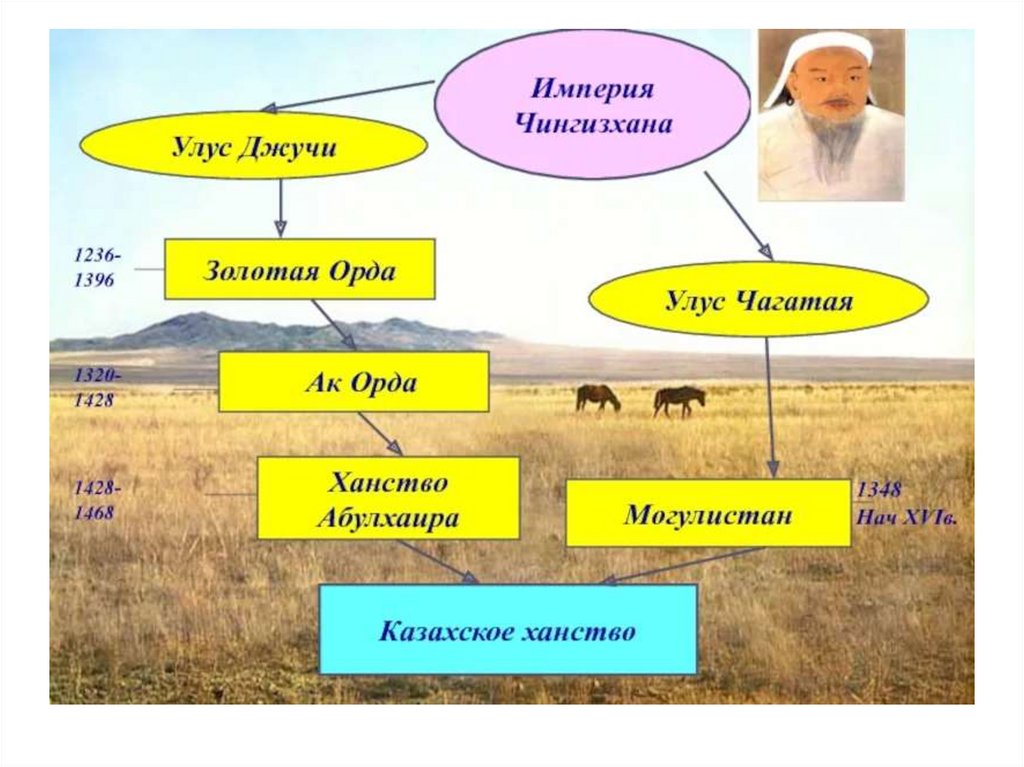 владениях Чингисхана. Второе племя – казахи и третье племя – мангыты, а из