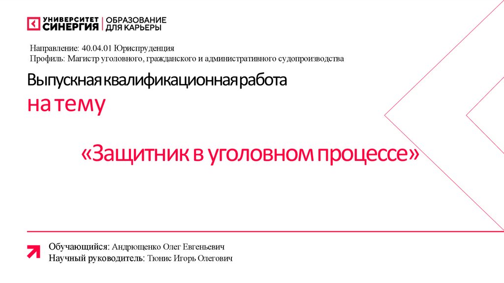 Направление: 40.04.01 ЮриспруденцияПрофиль: Магистр уголовного, гражданского и административного судопроизводства