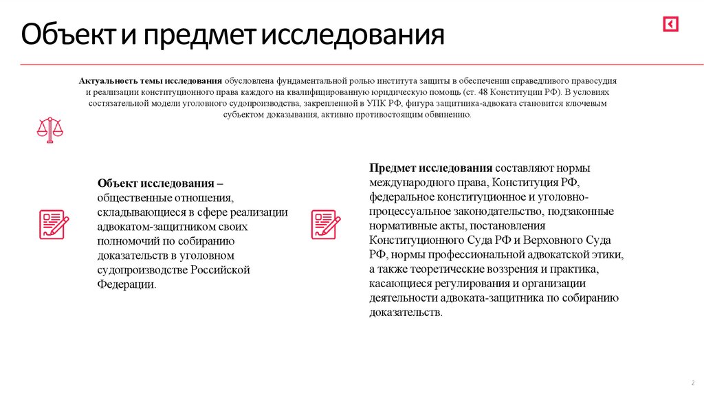 Объекти предметисследованияАктуальность темы исследования обусловлена фундаментальной ролью института защиты в обеспечении справедливого правосудия