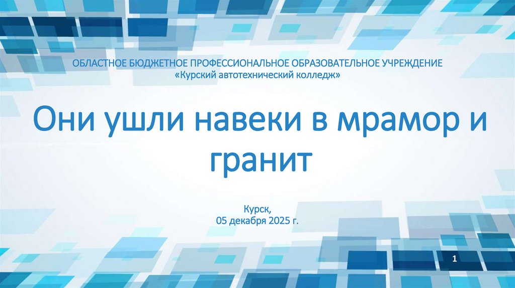 1. Они ушли навеки в мрамор и гранит