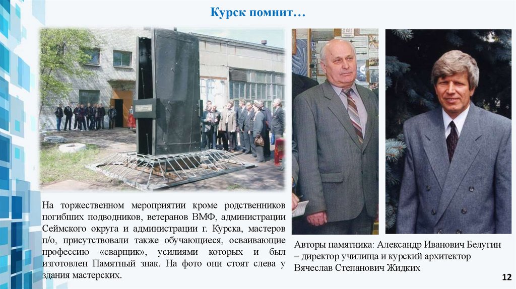 п/о, присутствовали также обучающиеся, осваивающие Авторы памятника: Александр Иванович Белугин