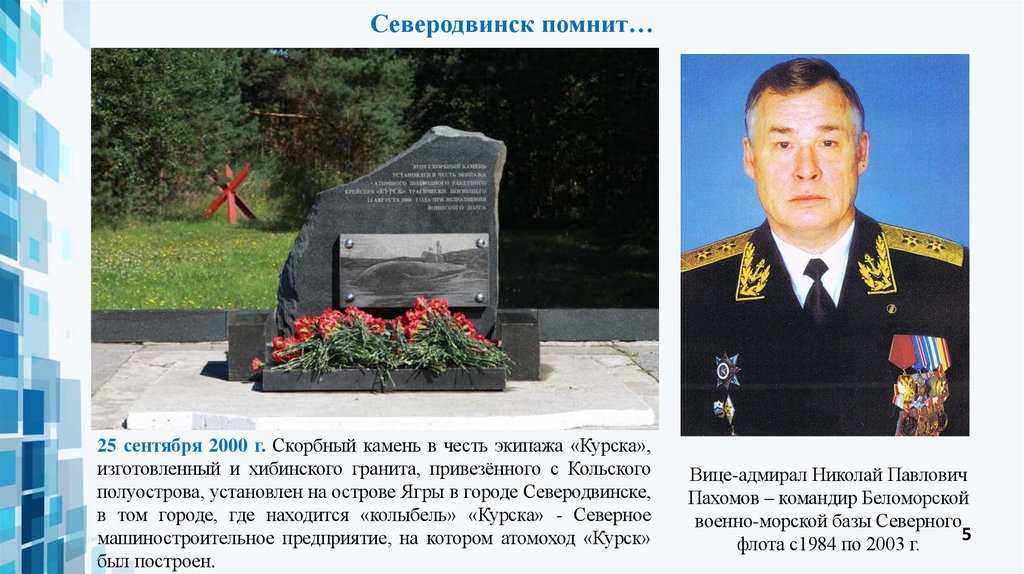 Северодвинск помнит…25 сентября 2000 г. Скорбный камень в честь экипажа «Курска»,