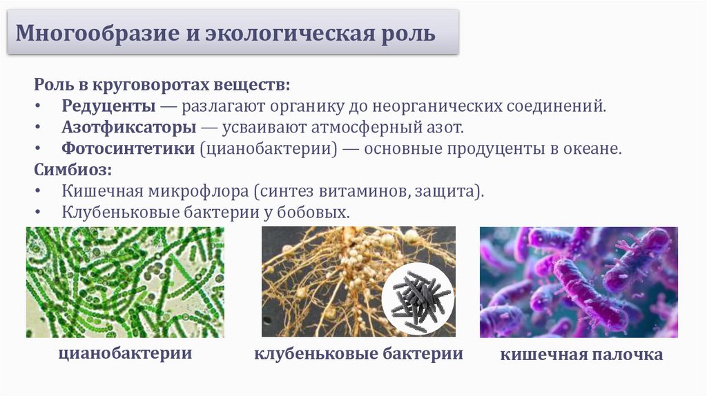 Многообразие и экологическая рольРоль в круговоротах веществ: