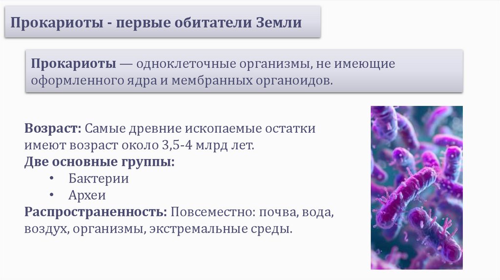 Прокариоты - первые обитатели ЗемлиПрокариоты — одноклеточные организмы, не имеющие
