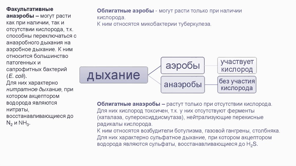 Облигатные анаэробы – растут только при отсутствии кислорода.
