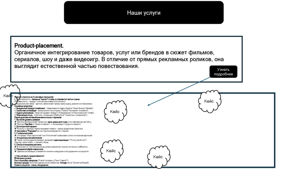 сериалов, шоу и даже видеоигр. В отличие от прямых рекламных роликов, она