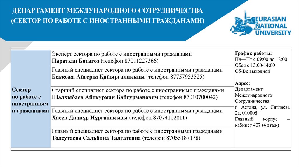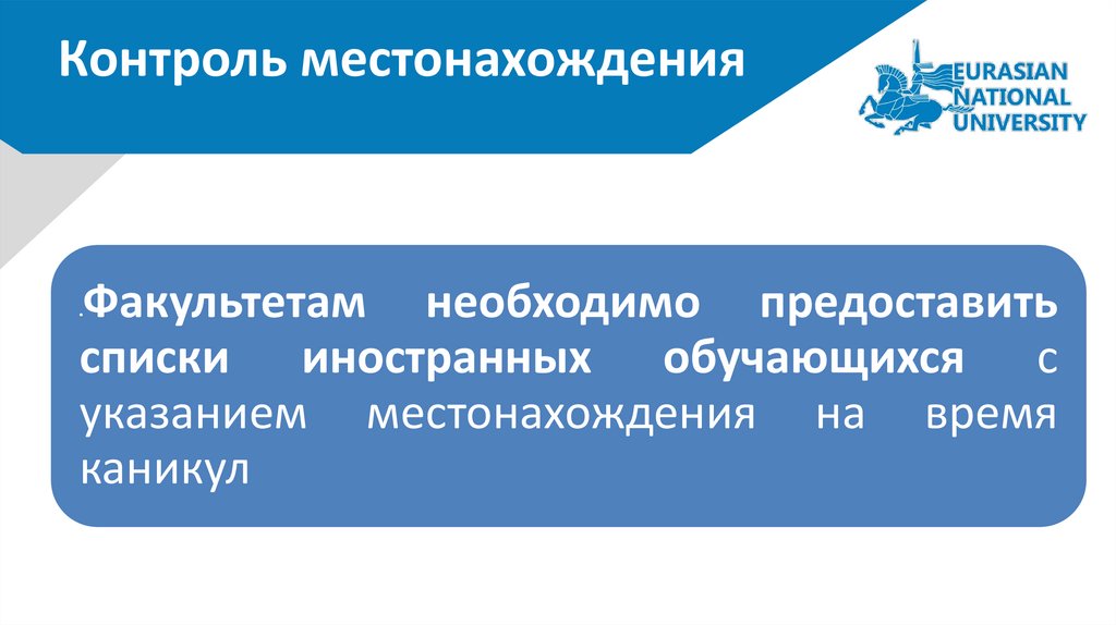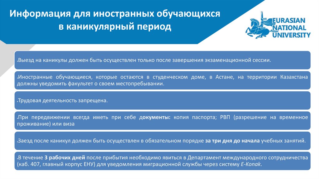 (каб. 407, главный корпус ЕНУ) для уведомления миграционной службы через систему E-Konak.