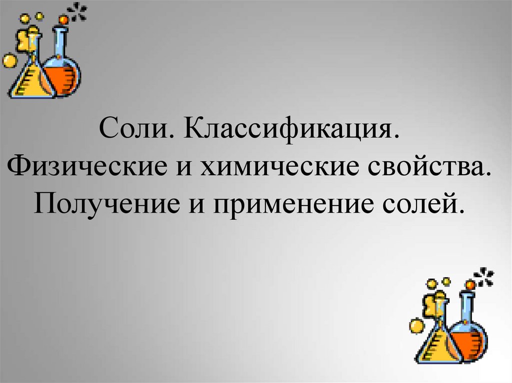 1. Соли. Классификация. Физические и химические свойства. Получение и применение солей.