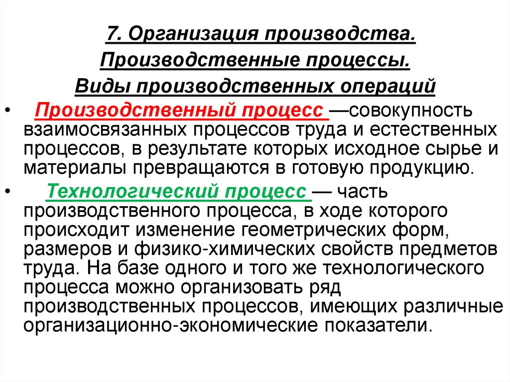 7. Организация производства.Производственные процессы.