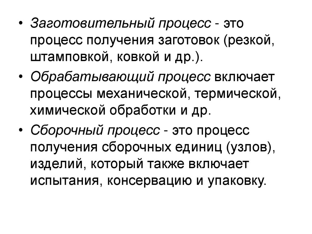 Заготовительный; обрабатывающий;