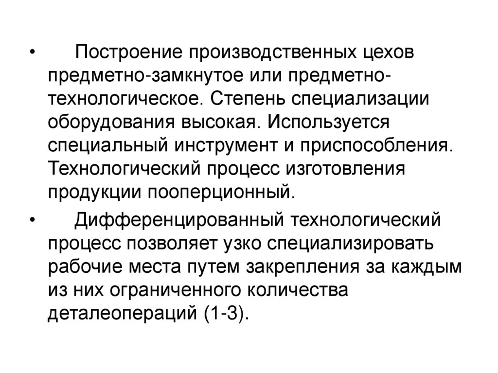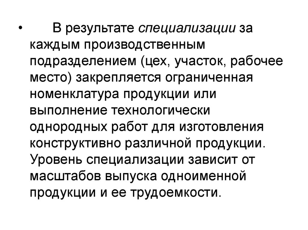предметно-замкнутое или предметнотехнологическое. Степень специализации